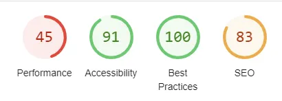 Today we’re sitting at a combined bundle of less than 500 kB. I regret to say that I don’t have any Lighthouse metrics from the start, but today they’re roughly at around 50.